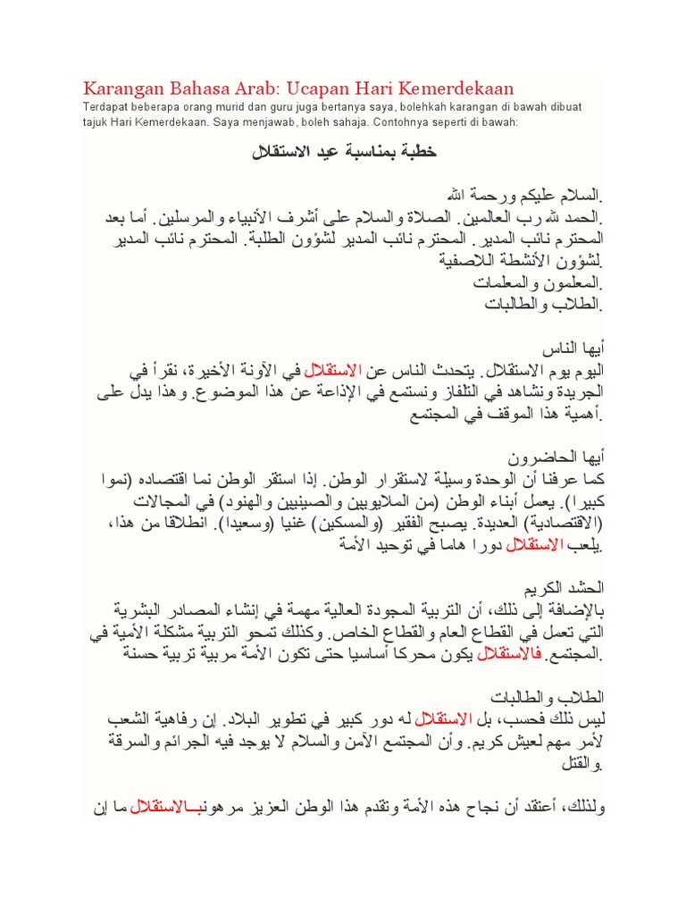 Karangan Bahasa Arab Hari Kemerdekaan